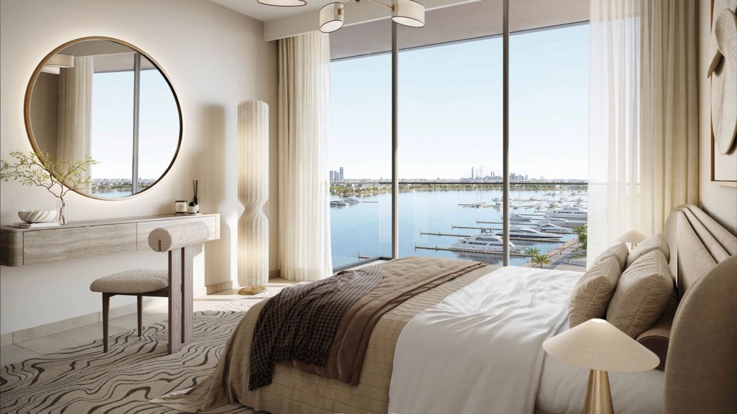 The development presents a curated collection of 1- to 3-bedroom apartments, thoughtfully designed for comfort, light, and everyday elegance. Spacious layouts invite natural light through floor-to-ceiling windows, framing panoramic views of the marina, the Downtown Dubai skyline, and lush landscaped surroundings.