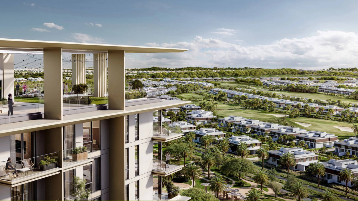 Overlooking the Dubai Hills Golf Course and neighbouring