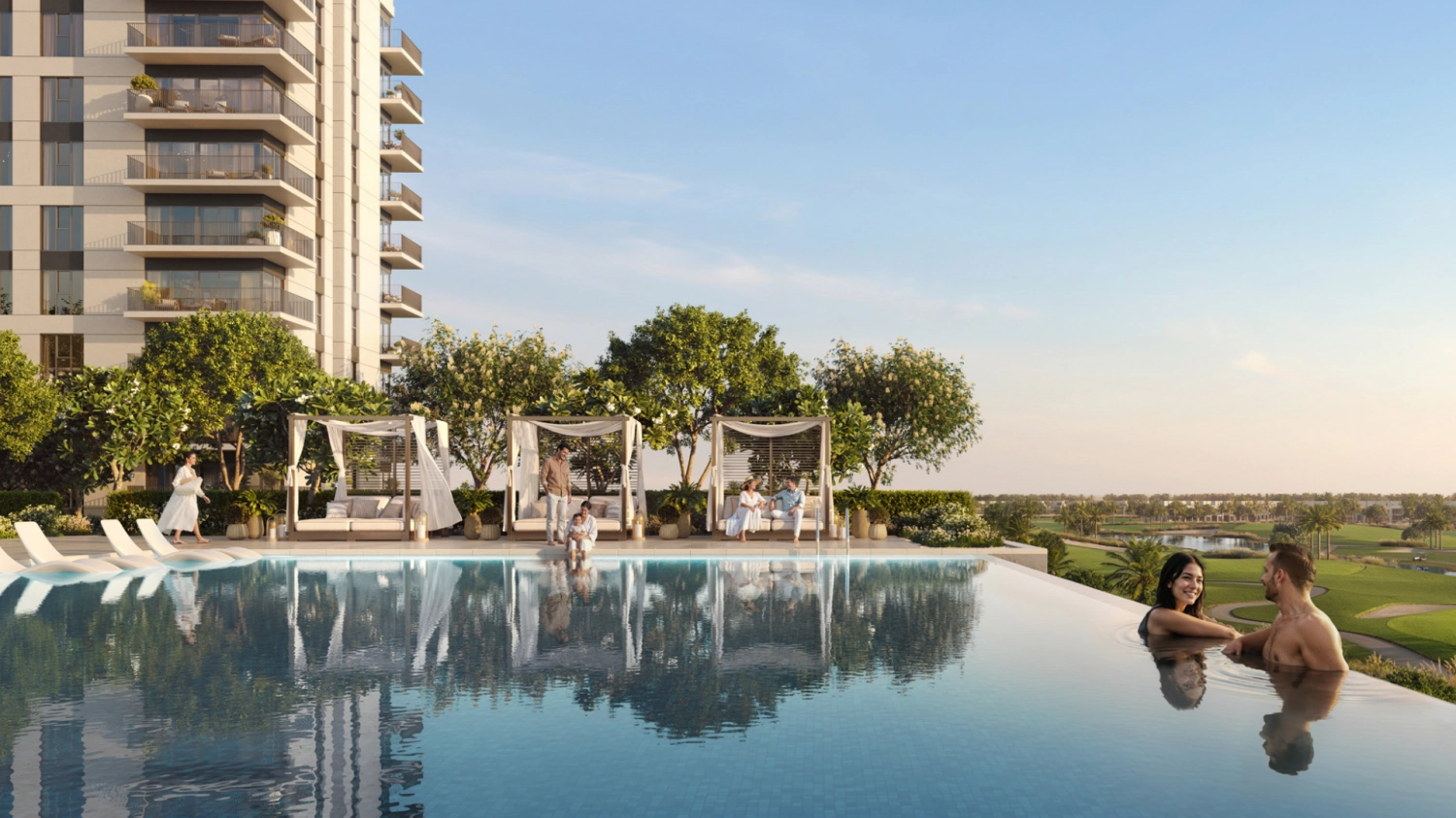 Inside, residences are designed to balance comfort and functionality. Open-plan living areas, modern kitchens, and refined finishes create homes that feel bright, practical, and effortlessly stylish. Large windows bring in natural light throughout the day, while private balconies allow residents to enjoy the calm rhythm of golf-course living.