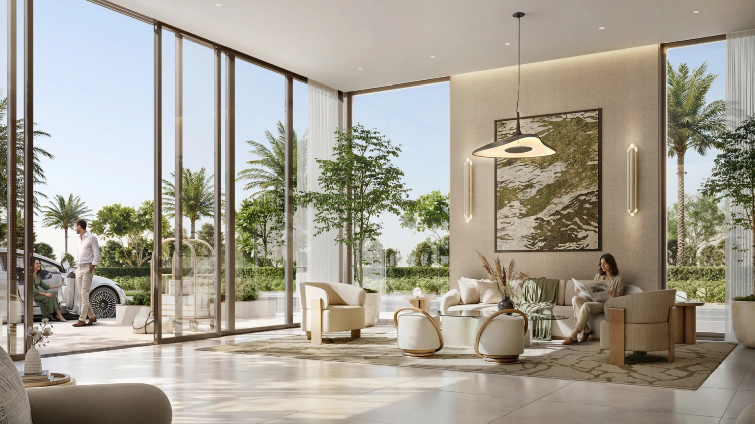 Golf Vale’s architecture reflects understated elegance. Clean lines, natural tones, and expansive glazing allow sunlight to flow effortlessly through each residence while connecting indoor spaces with the lush outdoor landscape. The buildings rise gracefully within landscaped surroundings, creating an atmosphere that feels peaceful, open, and naturally inviting.
