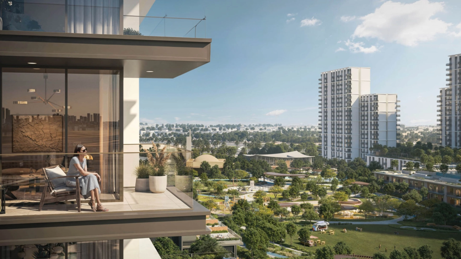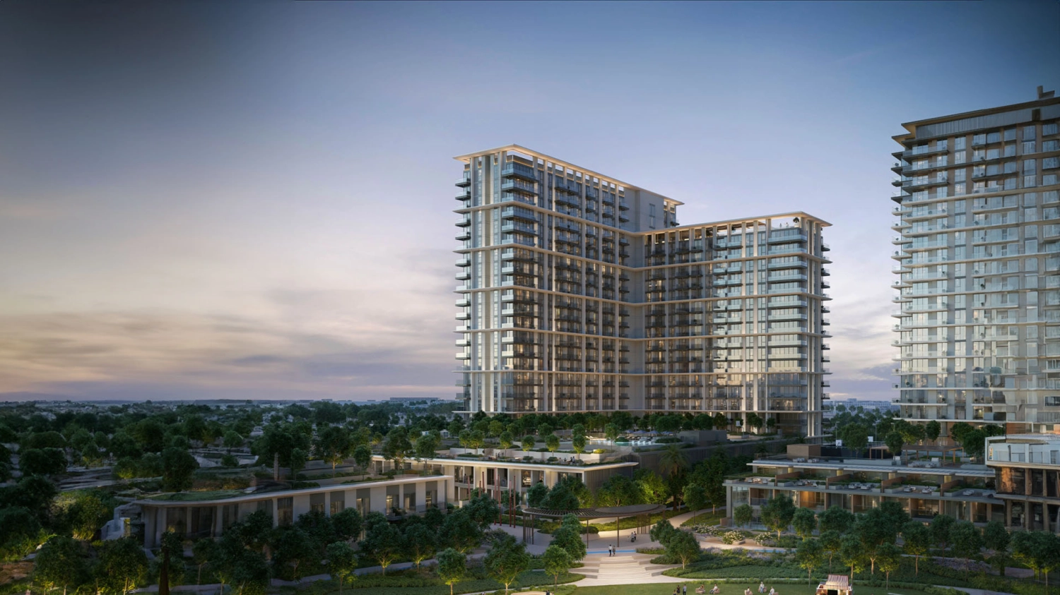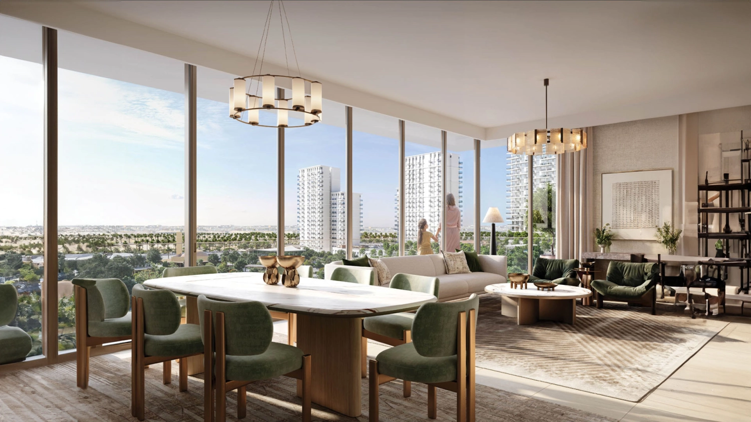 The architecture is elegant and contemporary, allowing light, greenery, and open views to naturally shape the living experience. Clean lines, generous glazing, and thoughtfully positioned buildings create an environment that feels calm, refined, and effortlessly livable.