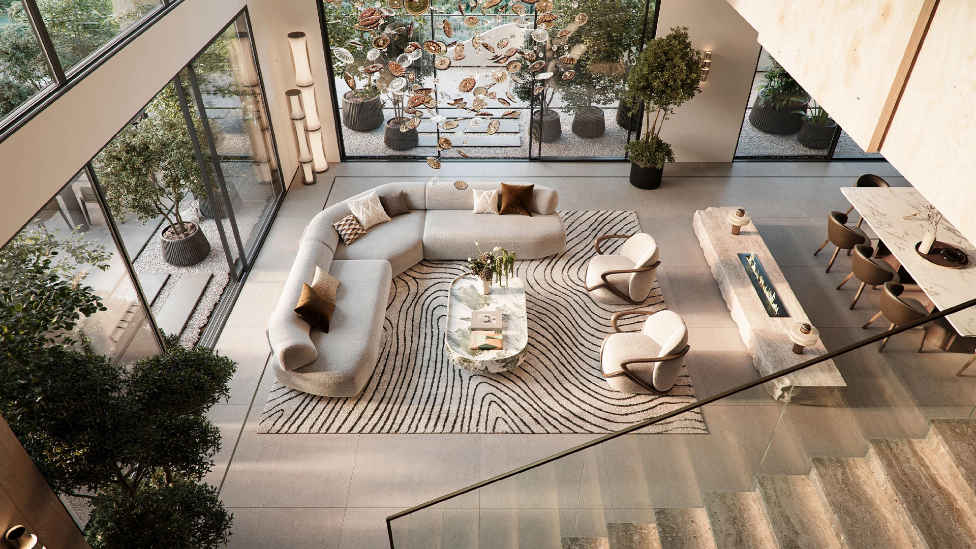 The architecture at Talea is inspired by nature, featuring beautiful leaf-like designs, shiny glass walls, warm stone accents, and sleek metal railings that dance with the light and reflect the sea. Spacious terraces and lush sky gardens invite outdoor living, while soft evening lights create a cozy ambiance along the coast. Inside, the tower offers a variety of homes ranging from one to four bedrooms, with sizes from 757 to a generous 4,462 square feet. Open kitchens flow seamlessly into bright living areas with floor-to-ceiling windows, and each home includes its own private garden terrace or balcony, a sparkling pool, smart climate control, and soothing natural tones.