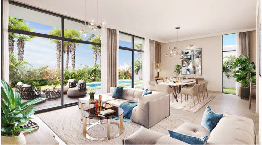 Amenities include large swimming pools, children's pools, courts for padel, tennis, and basketball, as well as green lawns for picnics. The community features shaded playgrounds, jogging tracks, a retail center, and bike paths to the Al Furjan Metro, all with 24/7 gated security.