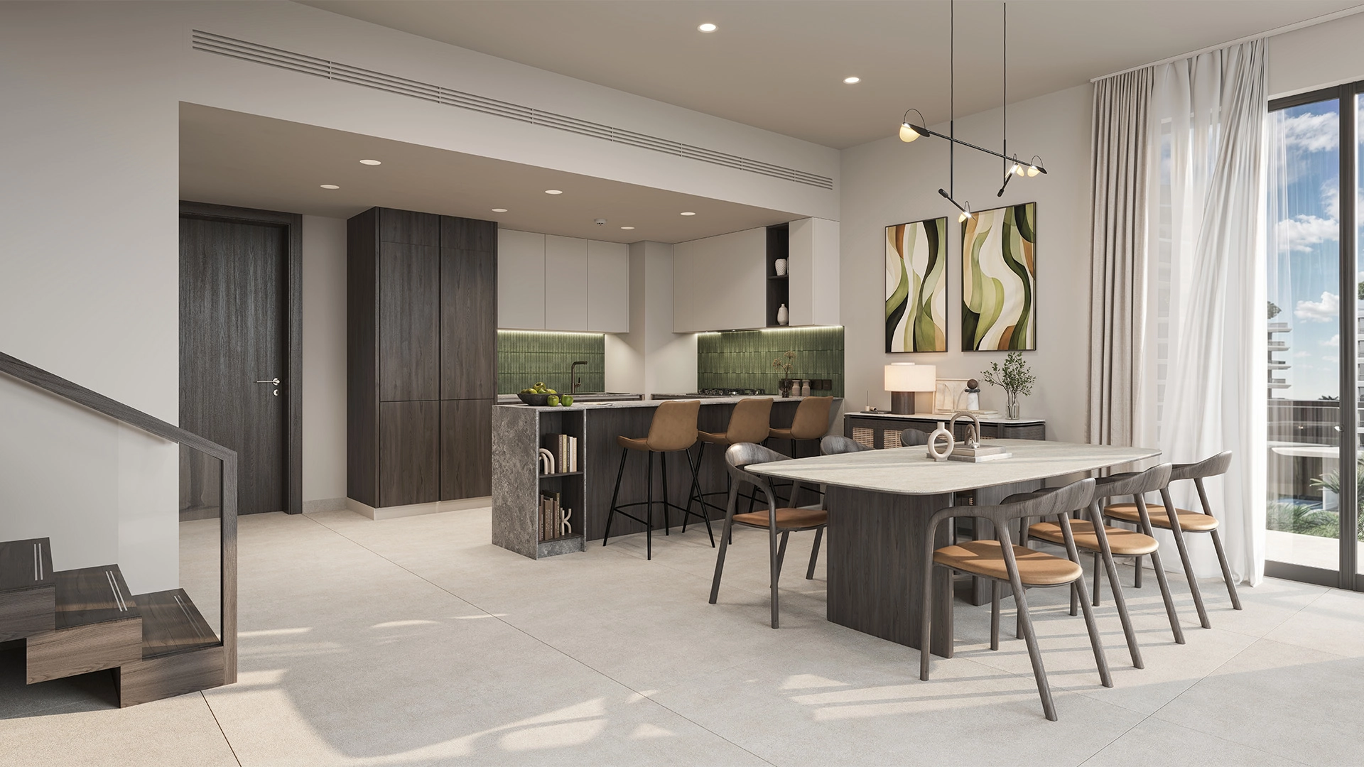 Verdes sits atop the central ridge of Haven, Dubai’s first wellness community. Low-rise buildings are surrounded by winding water streams, a 12-acre park, and shaded paths, ensuring that every home is just a short walk from nature and community hubs.