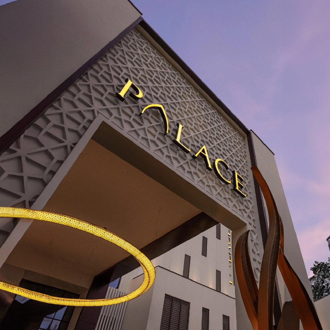 The building’s contemporary design blends expansive glass with warm, premium materials, allowing light and views to flow effortlessly through each space. Clean lines and thoughtful proportions create a timeless presence, where modern sophistication meets understated Palace elegance.