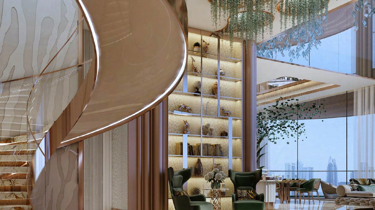 The lobby features a striking triple-height design that opens up to an indoor lagoon, a luxury spa, an aqua gym, a yoga studio, and a fish-pedicure retreat. Outside, residents can relax at a podium beach, enjoy the lazy river, and let kids have fun in the splash zone. Additional amenities include private gardens, concierge and valet services, and chef and housekeeping services, transforming everyday living into a five-star resort experience.