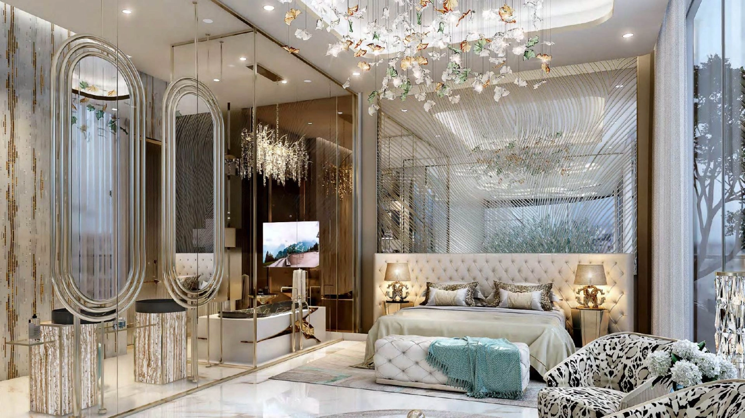 Shell-and-core homes range from 3,940 to 26,457 square feet and feature 3.2-meter ceilings, Cavalli marble, bespoke chandeliers, and floor-to-ceiling glazing. Each unit includes its own pool, a show kitchen, a lift shaft, a maid’s suite, and smart-home automation, allowing owners to create unique living spaces filled with natural light.