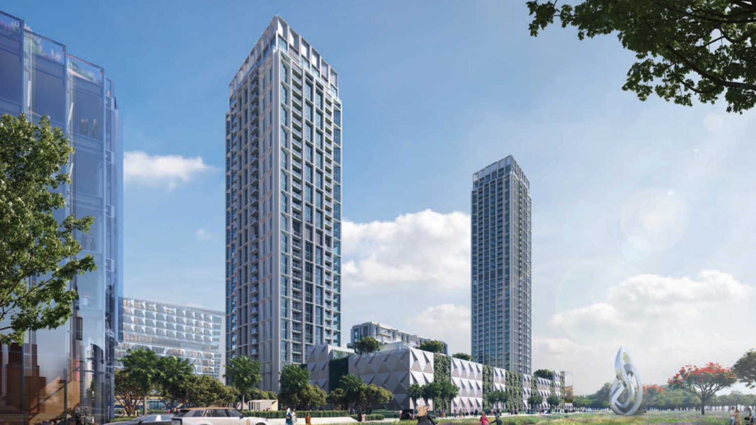 From the outside, the towers rise as a confident statement of contemporary design. Clean lines, elegant proportions, and carefully selected materials give the project a distinctive character that feels creative yet timeless. The architecture is not just about how it looks, but how it feels welcoming, expressive, and connected to its surroundings.