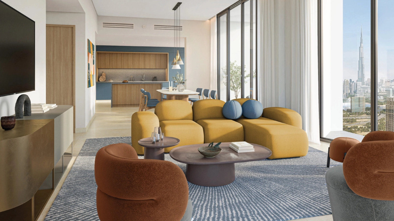 Inside, the apartments are crafted as calm personal spaces within a vibrant district. Living areas flow naturally, bedrooms feel private and restful, and finishes are chosen to enhance light and warmth. Whether you are working from home, entertaining friends, or enjoying a quiet evening, the design supports a lifestyle that balances creativity with comfort.