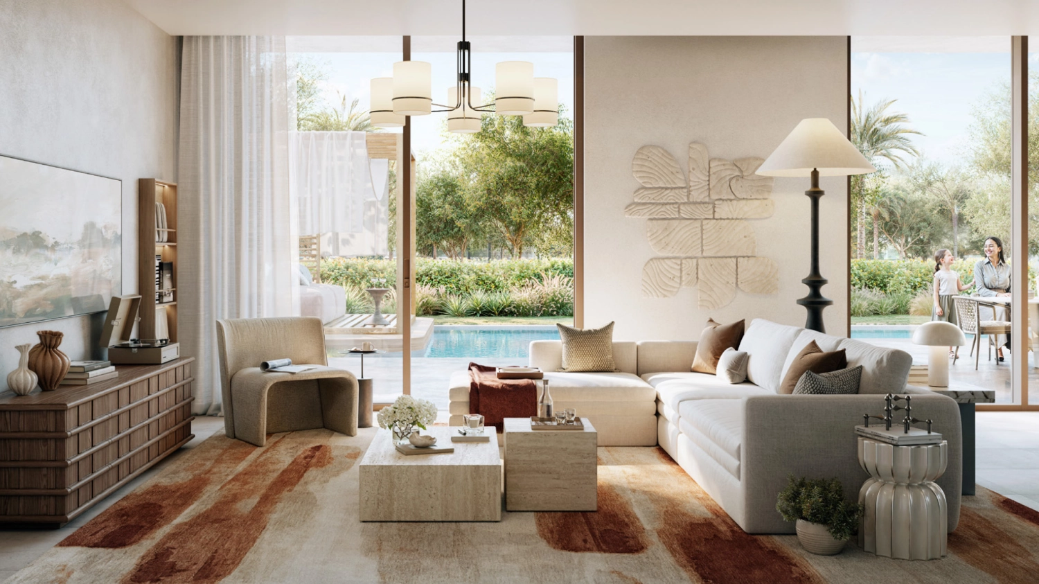 The community offers a refined collection of 4- and 5-bedroom villas, each crafted with contemporary architecture that blends clean lines with natural textures. Floor-to-ceiling windows invite sunlight into every corner of the home while framing views of greenery and tranquil surroundings. Every residence feels open, calm, and deeply connected to its environment.