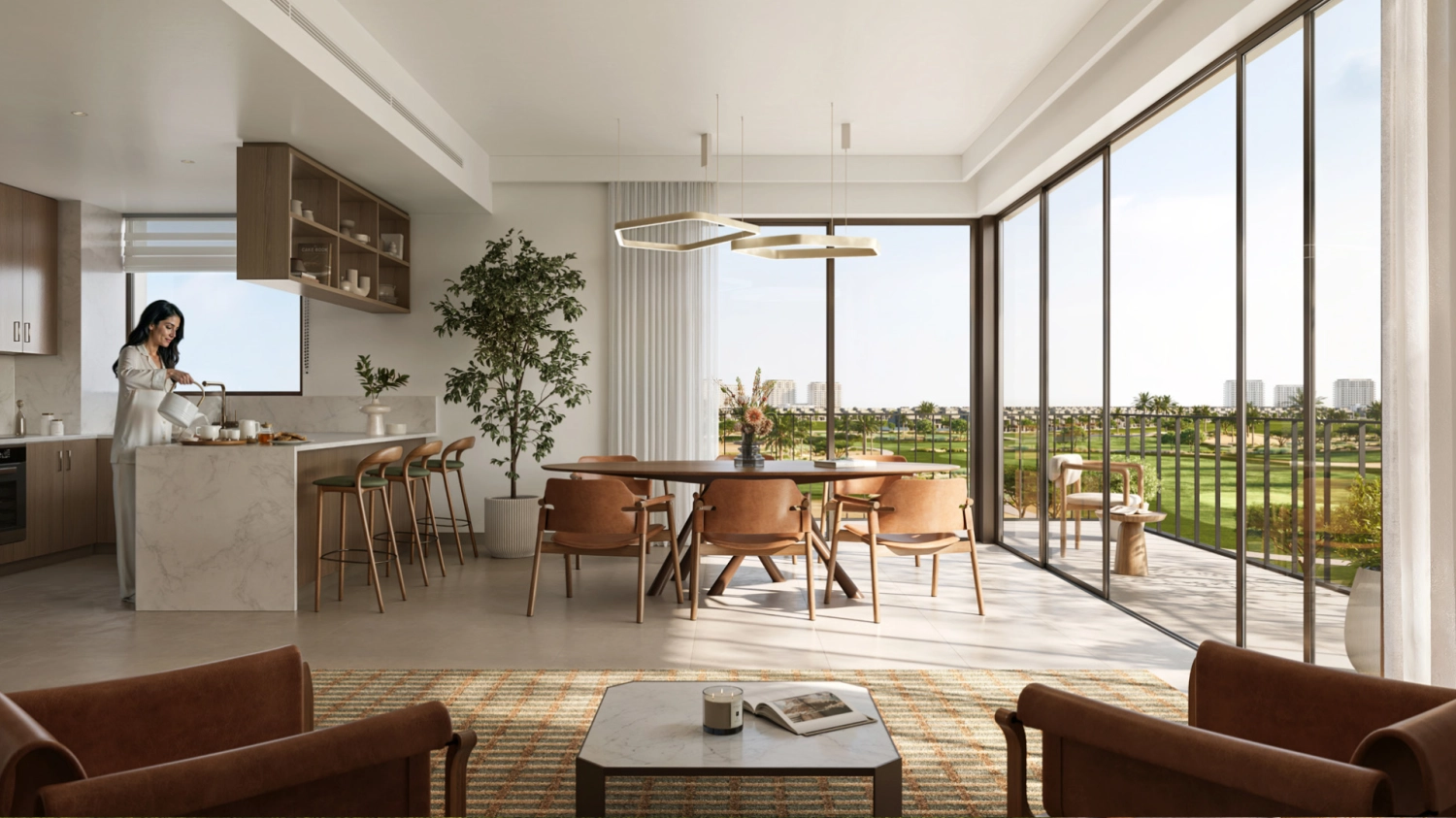 Inside, residences are designed to balance comfort and functionality. Open-plan living areas, modern kitchens, and refined finishes create homes that feel bright, practical, and effortlessly stylish. Large windows bring in natural light throughout the day, while private balconies allow residents to enjoy the calm rhythm of golf-course living.