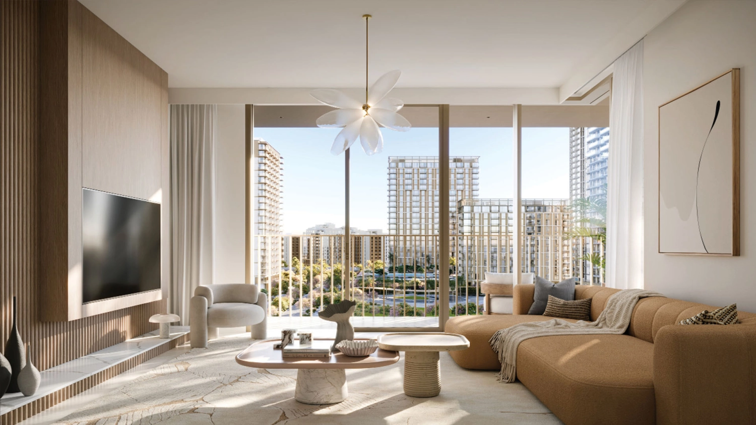 balconies that open toward canal views, mangroves, and Downtown Dubai’s