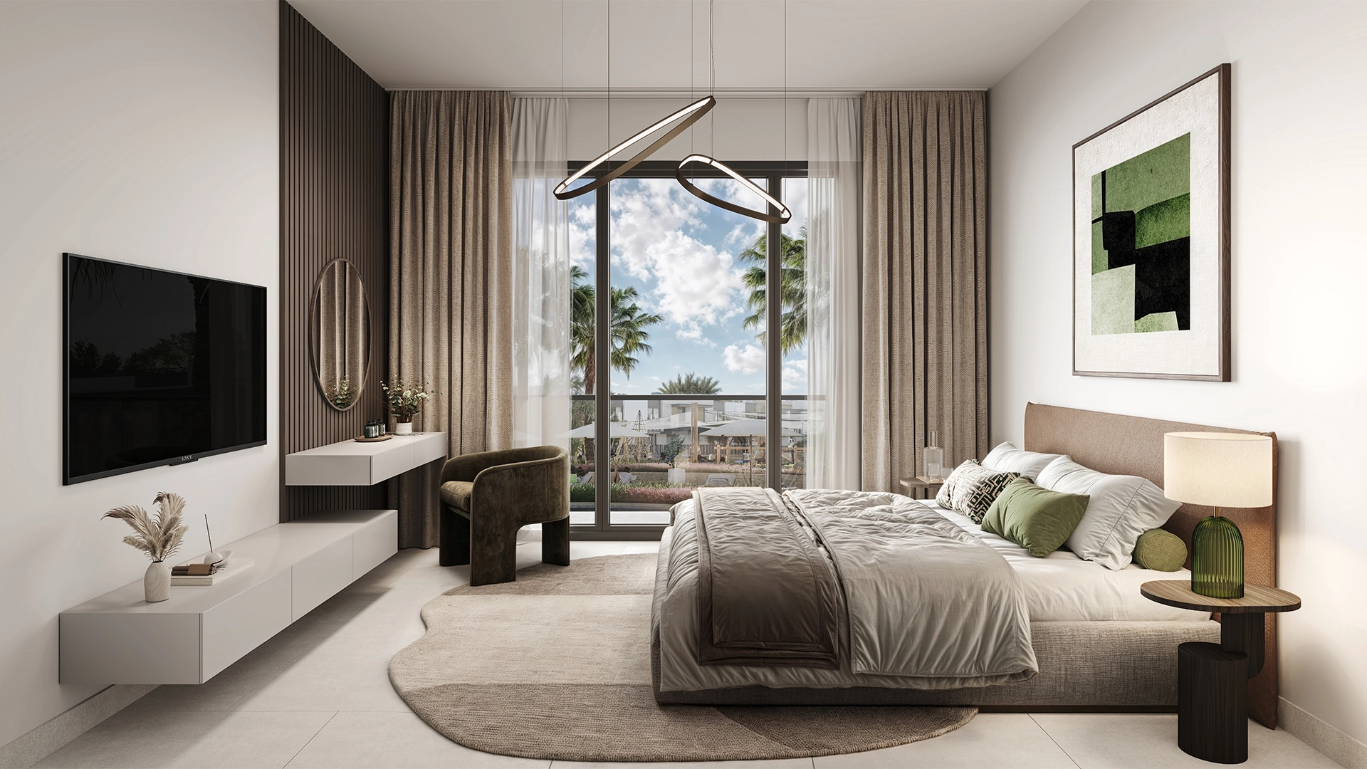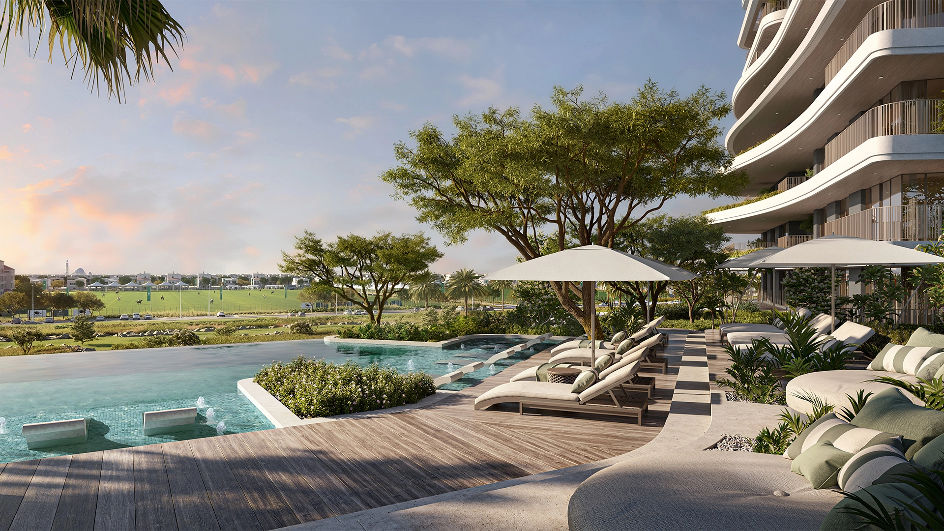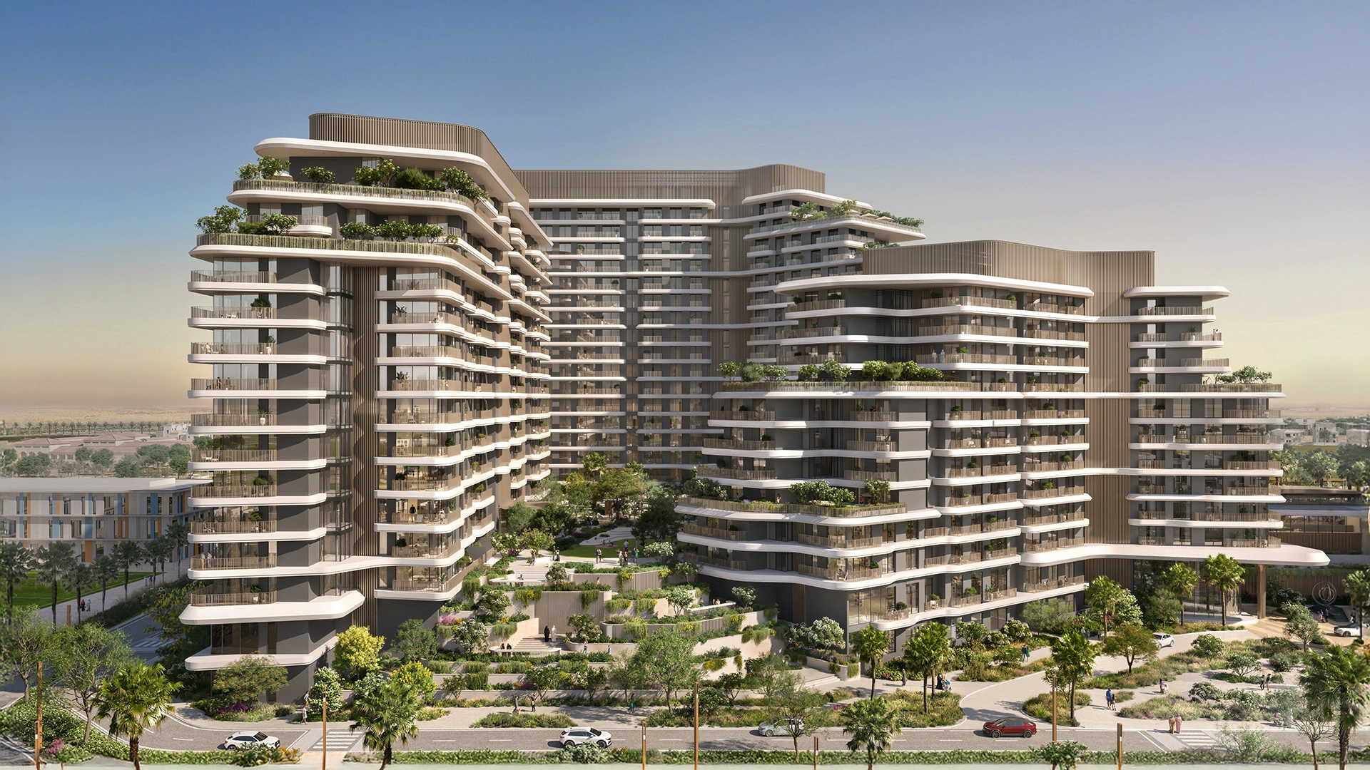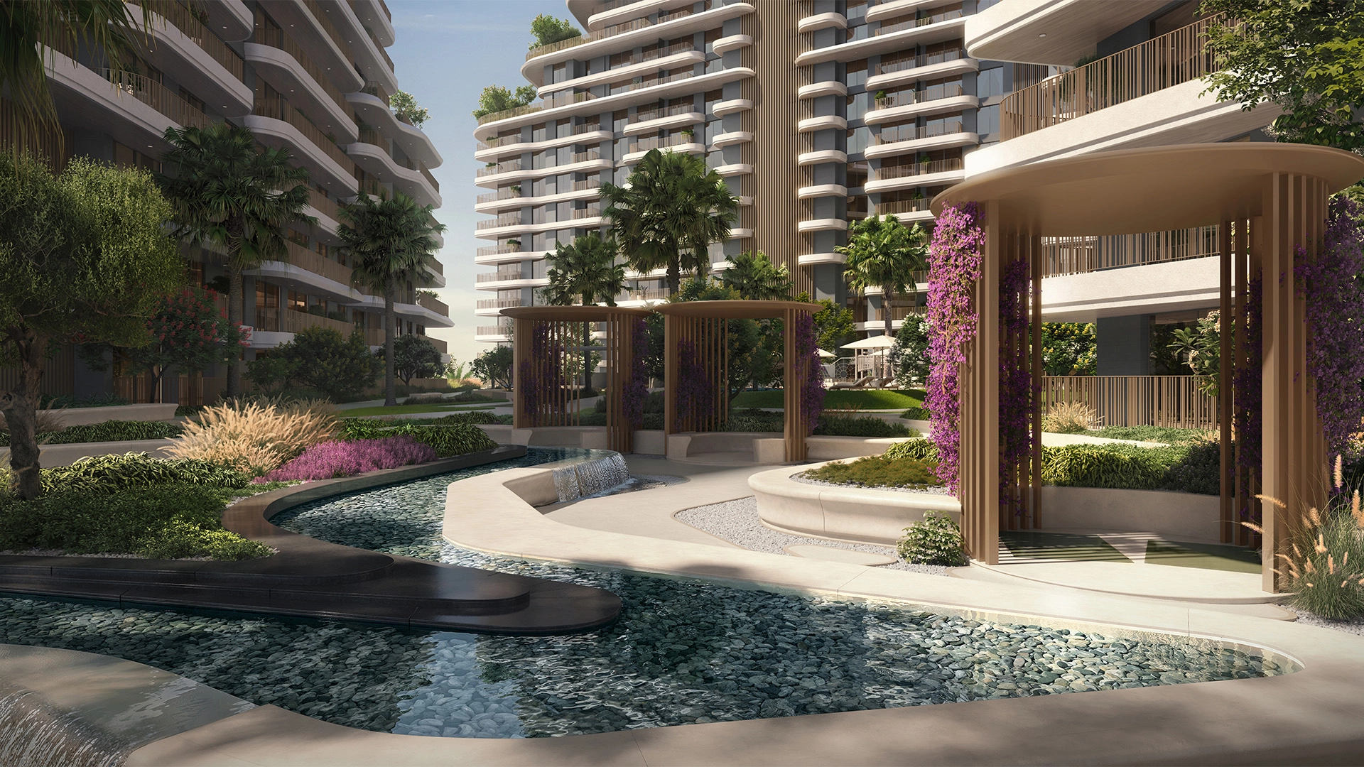 Verdes sits atop the central ridge of Haven, Dubai’s first wellness community. Low-rise buildings are surrounded by winding water streams, a 12-acre park, and shaded paths, ensuring that every home is just a short walk from nature and community hubs.